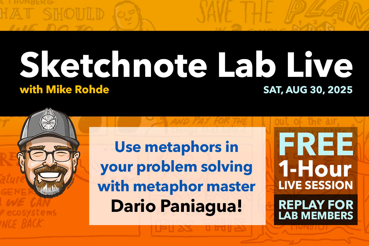 August Sketchnote Lab Live: Use metaphors in your problem-solving with metaphor master Dario Paniagua!