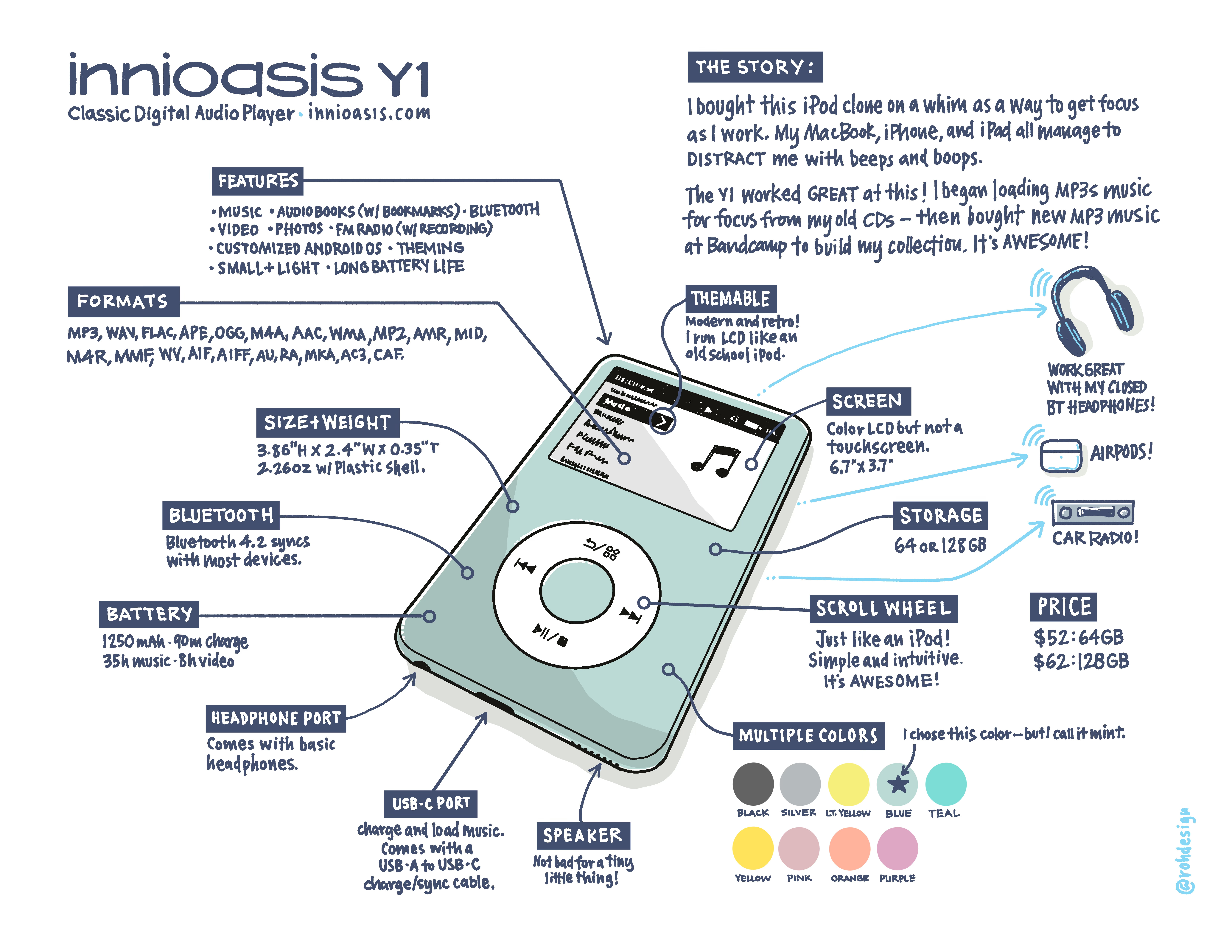 A week later, I opened the package, loaded the music, and took the Y1 for a spin while working on a UX design project. It was AWESOME!
