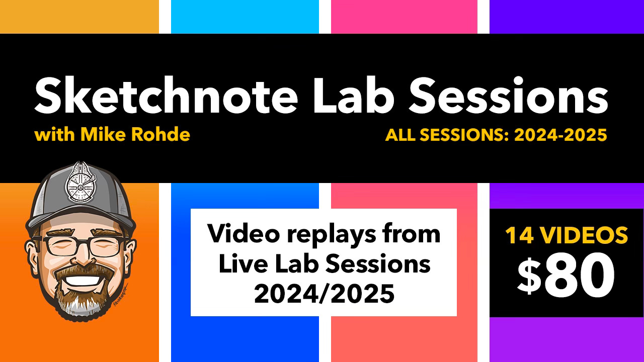 I've collected 14 Live Lab video sessions into a convenient downloadable package. Buy this collection of videos for just $80 and watch and learn sketchnoting skills on any device you'd like.