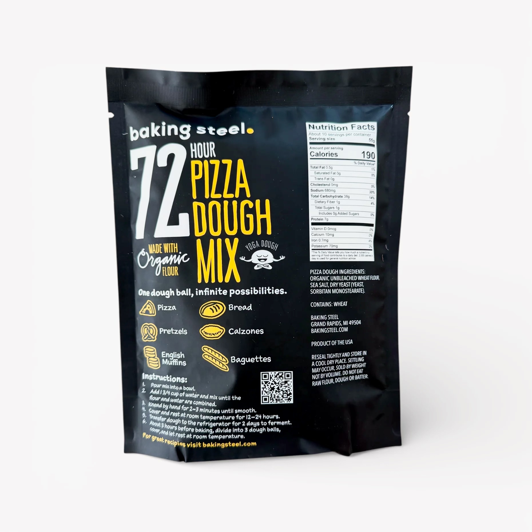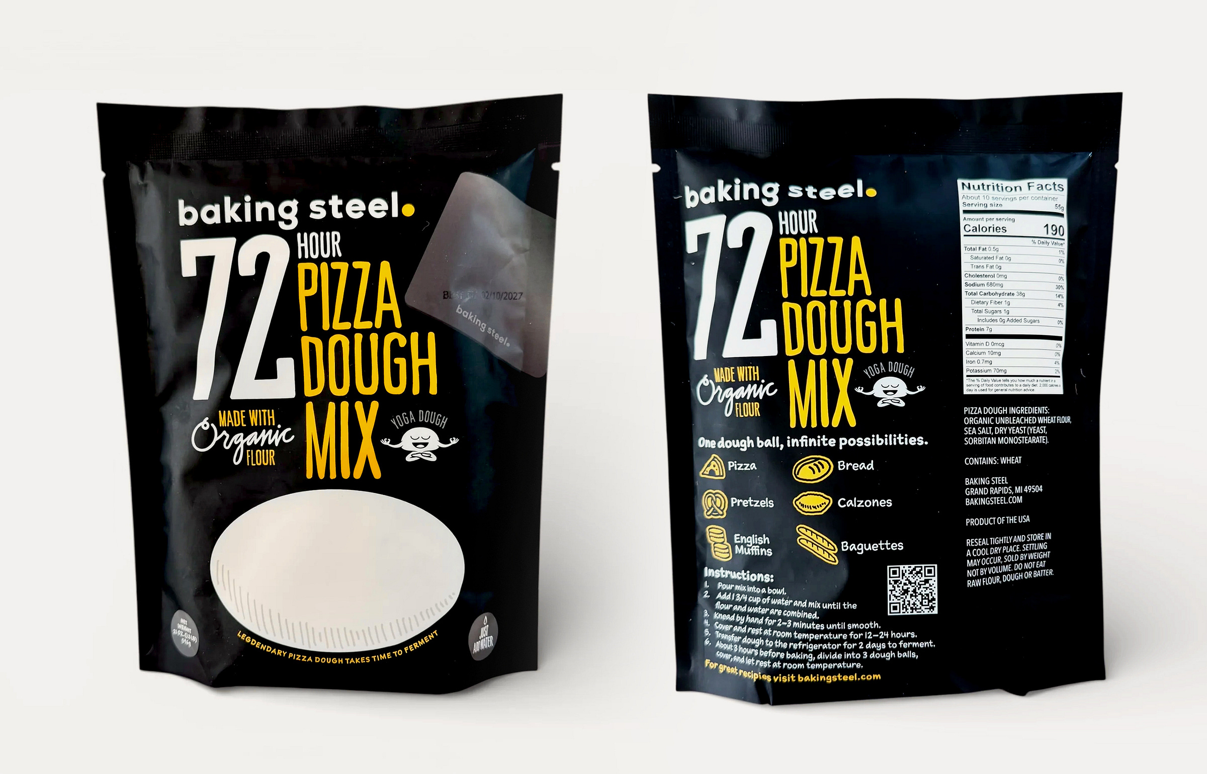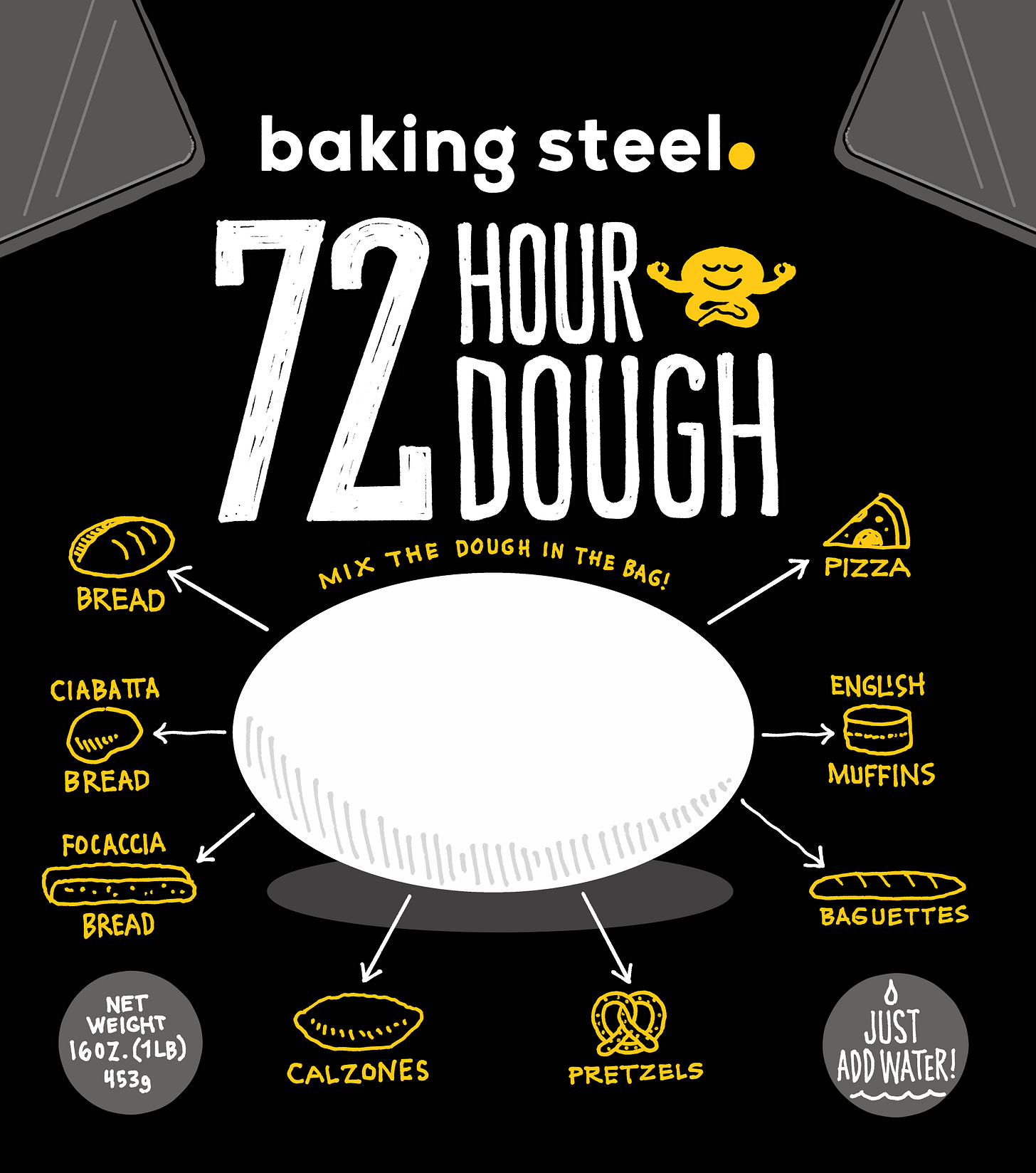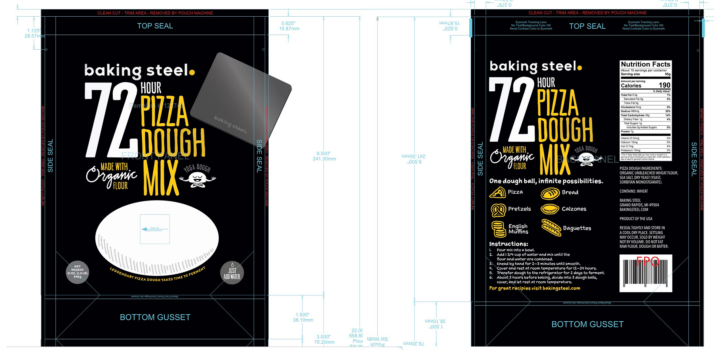 Andris Lagsdin of Baking Steel needed packaging for his 72 Hour Pizza Dough mix, a product he created around his popular recipe for pizza dough. He loved the idea of making this mix accessible to anyone who wants to make pizza by just adding water.